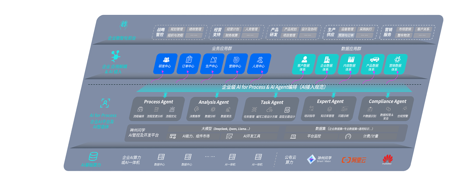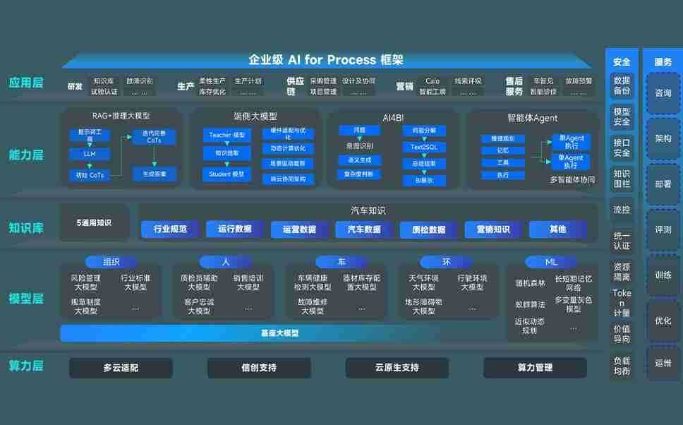 端到端的一站式AI工作空间深度融合了从企业战略规划到日常经营的全流程业务板块,,定向解决车企内部领域多、、、部门多、、链条长、、、、场景碎片化等难题,,,,支持车企快速构建以AI为核心的生产力写作体系,,,实现任务执行与AI能力的无缝集成与交互