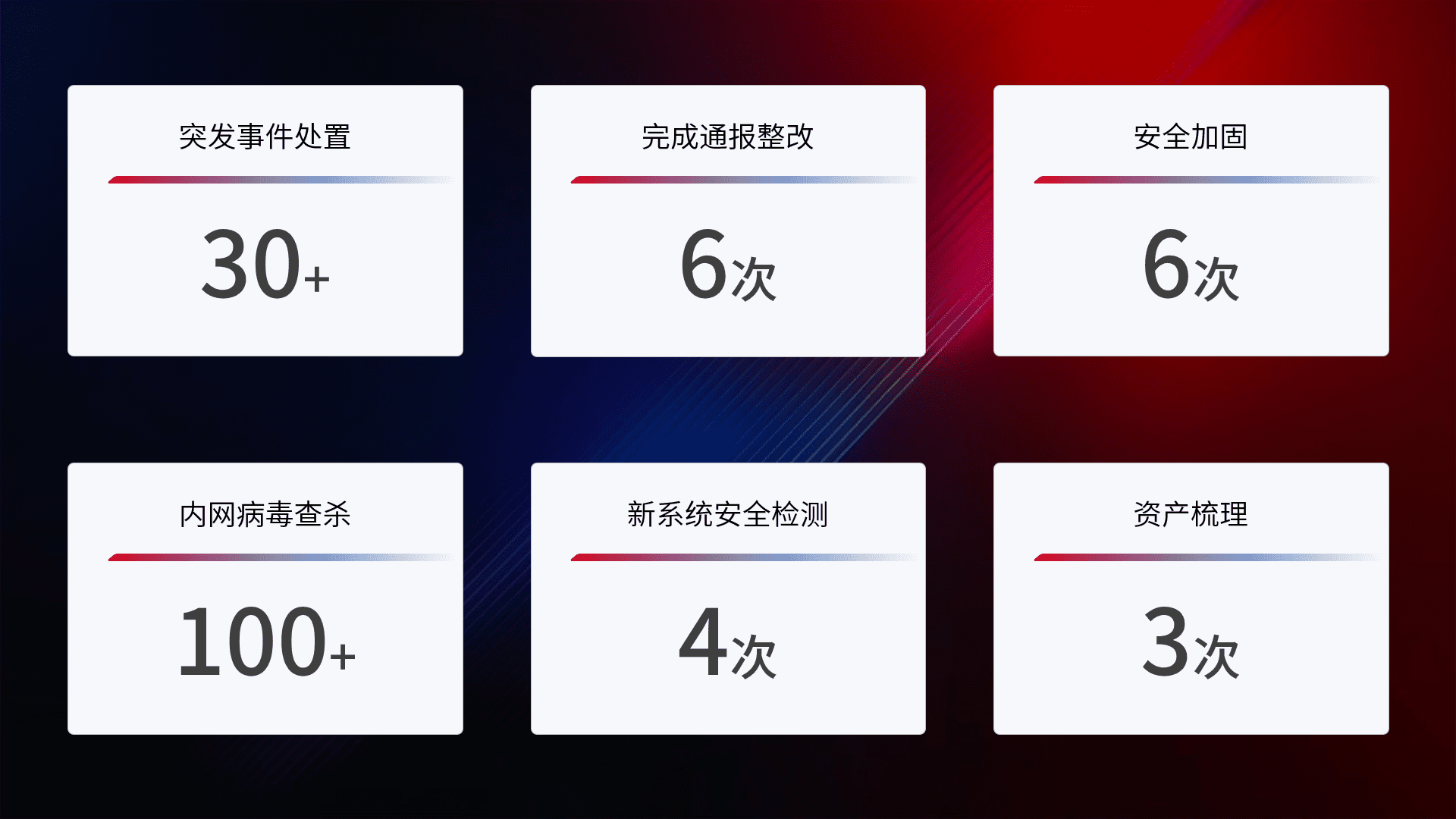 网络安全加固与风险管理:通过技术加固手段,,如加强区域隔离,,缩减攻击内网横向移动的范围;优化现有网络安全管理制度,,,降低网络威胁暴露面,,,减少被黑客攻击的可能性。。